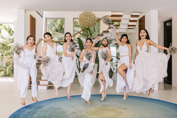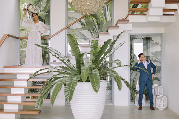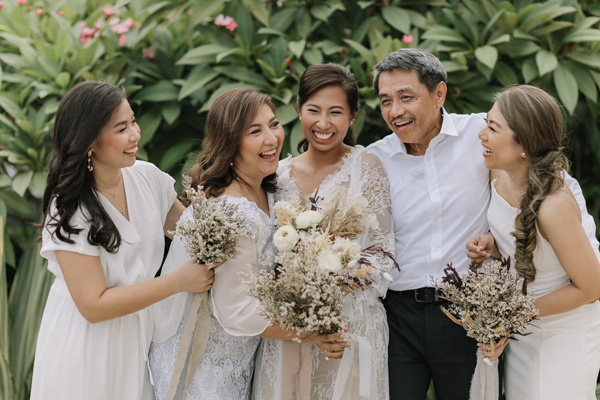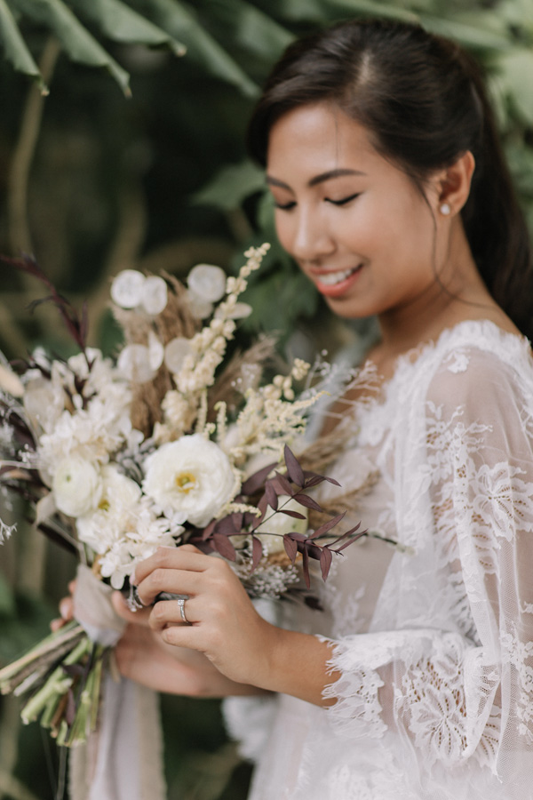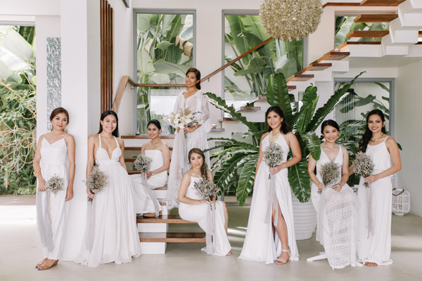 There are so many things to love and to look out for in this boho wedding! (I’ll keep this intro short so you can get started!) First is the relaxed lace wedding dress that Roanne chose to wear; second are the all-white bridesmaid dresses; third is the gorgeous styling from ceremony to reception; and fourth are the venue options they chose from preparation to party! All these elements came together beautifully, but what really made this set standout was the beaming smiles of David and Roanne. Their happiness is contagious! Thanks Rainbowfish Photography for sharing this set with us!