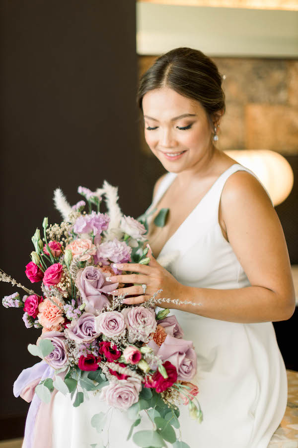 Who can resist the classic combination of purple and pink? Soft lavenders and magentas create a bouquet that’s playful, romantic, and totally eye-catching. It’s a color combination that’s guaranteed to add a touch of whimsy to your wedding day. And trust us, the vibrant hues will look amazing in your photos!