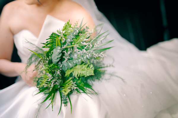 Ditch the flowers altogether and embrace the beauty of greenery! A lush green bouquet made of ferns, eucalyptus, and other leaves create a fresh and modern statement, perfect for the nature-loving bride who wants a unique and eco-friendly touch.